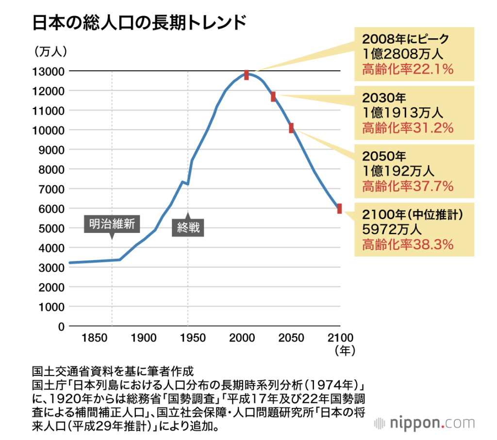 2007年に超高齢社会を迎えており、今後もますます高齢者率は高くなっていきます。